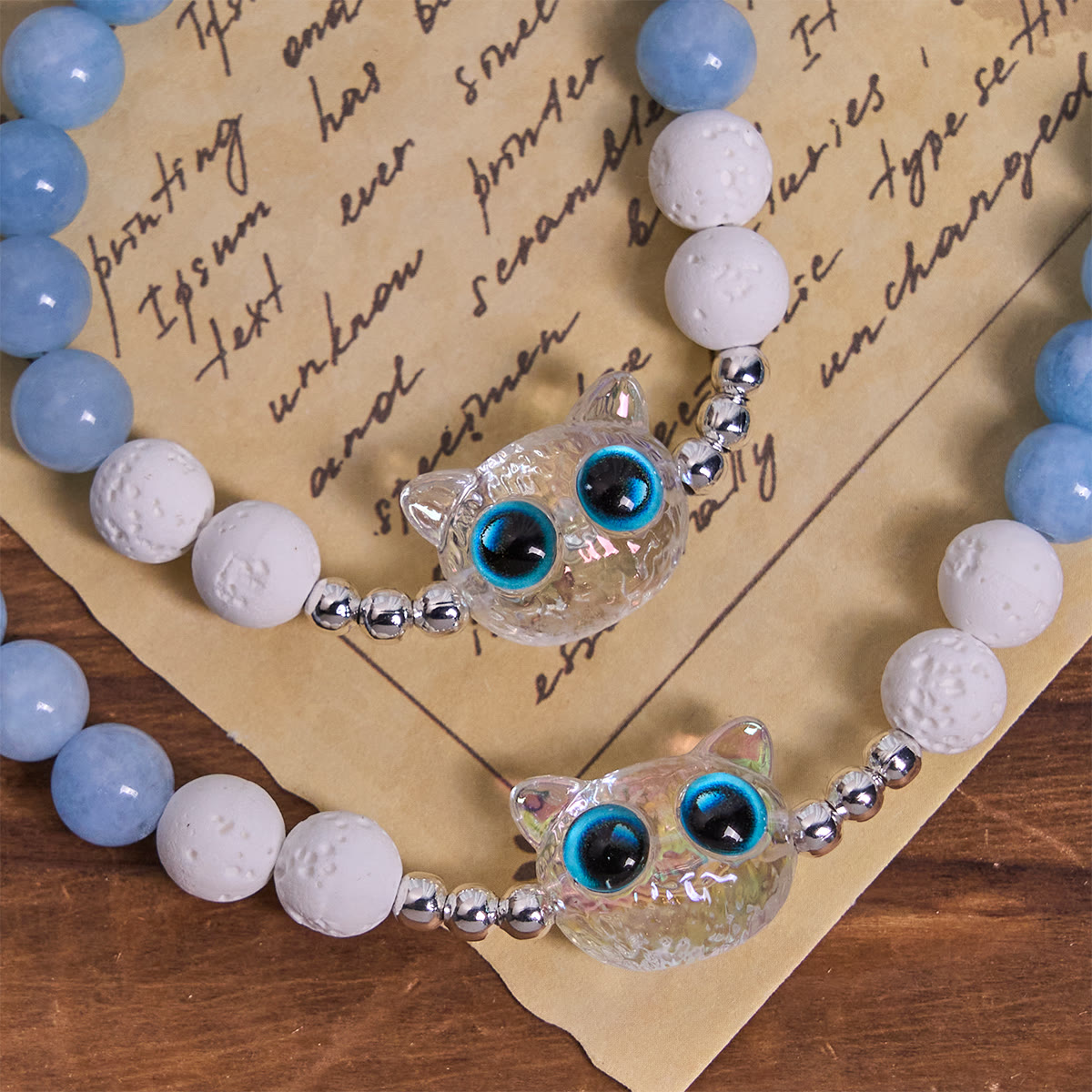 Christianartworkshop Glass Cat Blessing with Aquamarine & White Lava Stone Memorial Animal Rosary