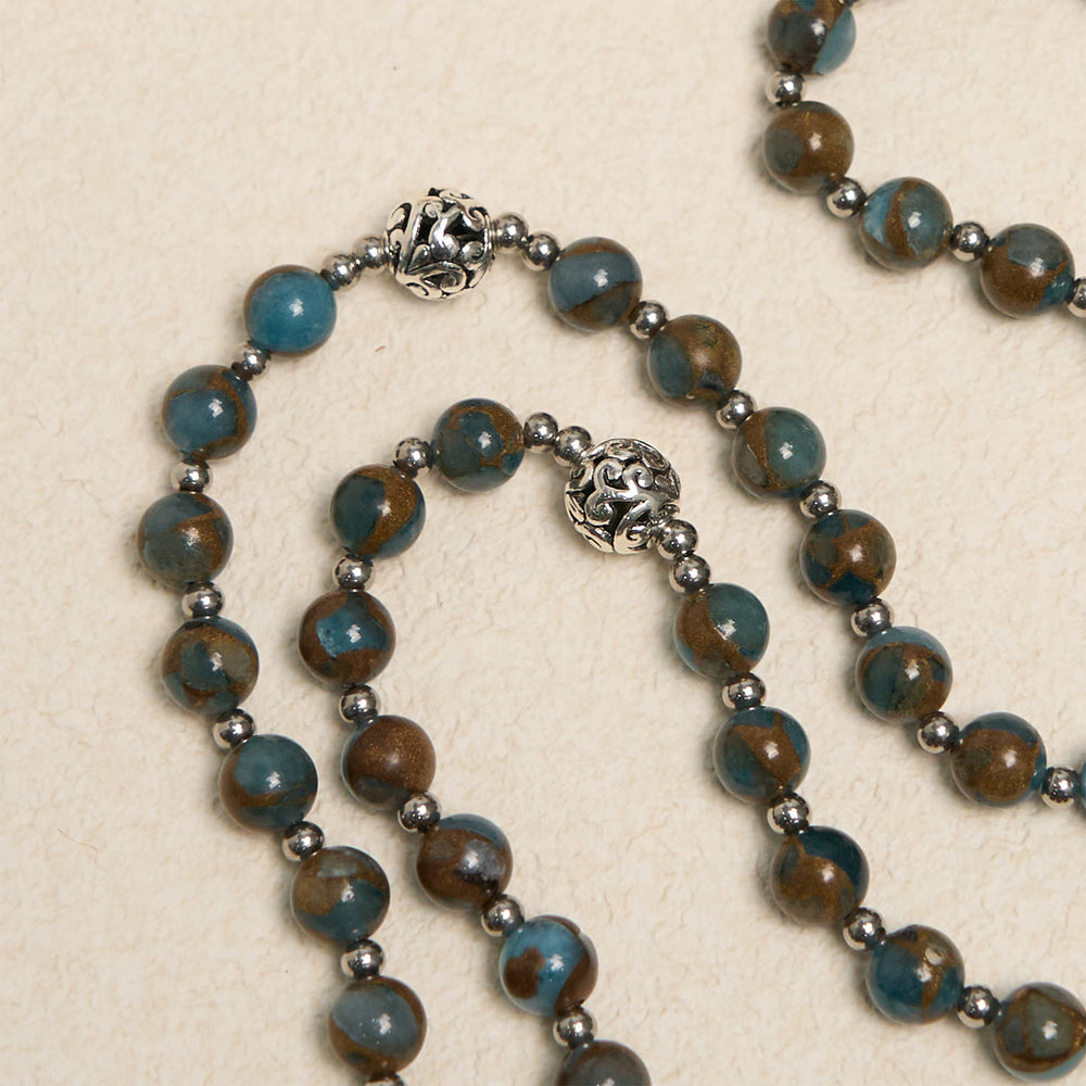 This rosary is more than just a piece of jewelry; it's a tangible connection to your faith. The beads, crafted with a harmonious blend of deep blue and earth - toned hues, symbolize the vastness of the divine sky and the grounding strength of the earth. Each bead is a reminder of the prayers that have been and will be recited, a step on the spiritual journey.