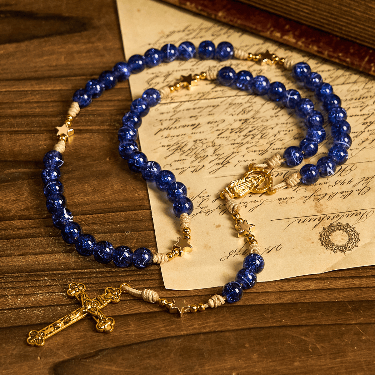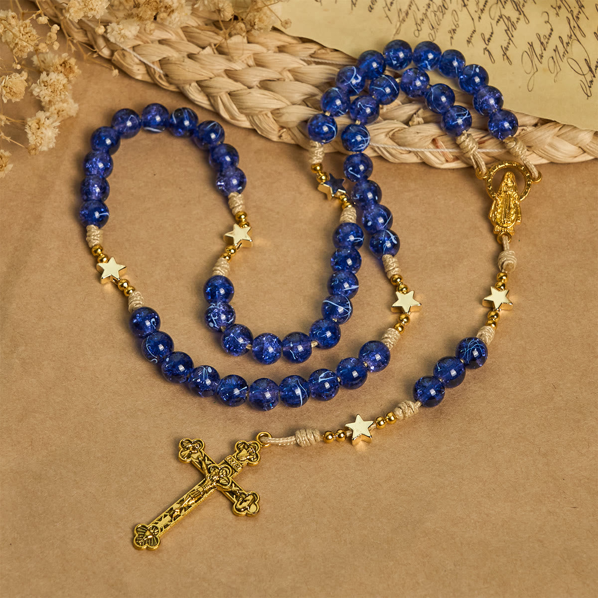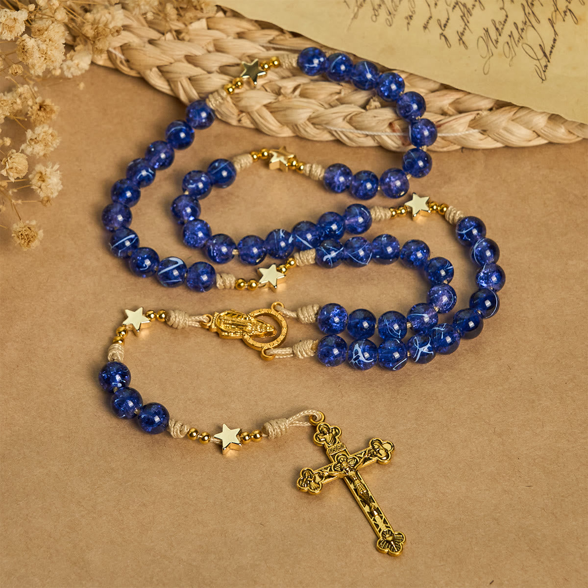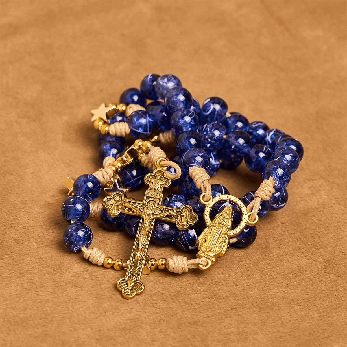 The glittering star accents symbolize the eternal promise of God’s light, guiding believers through life’s journey. Each bead reflects the brilliance of faith, making every prayer a radiant offering of devotion. -