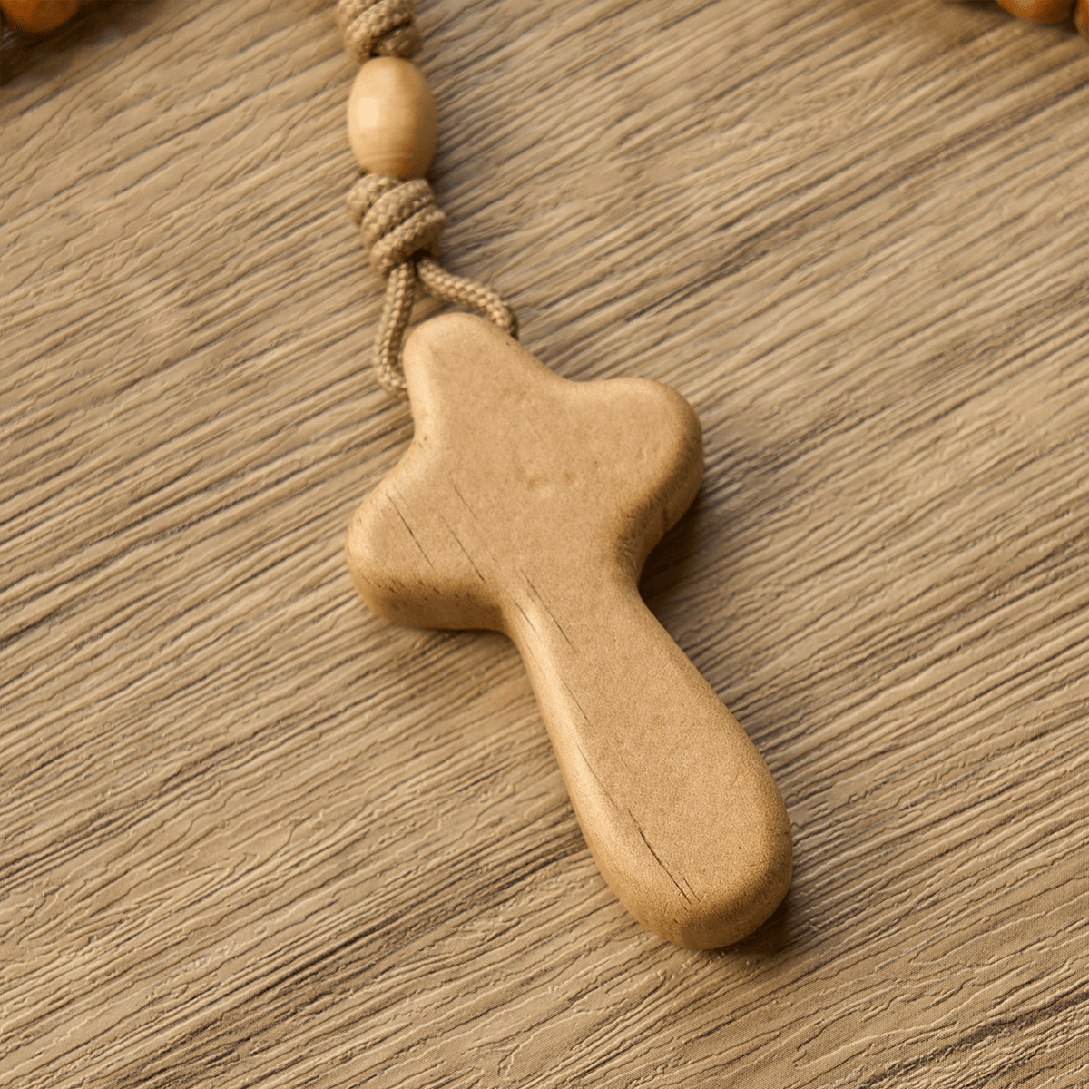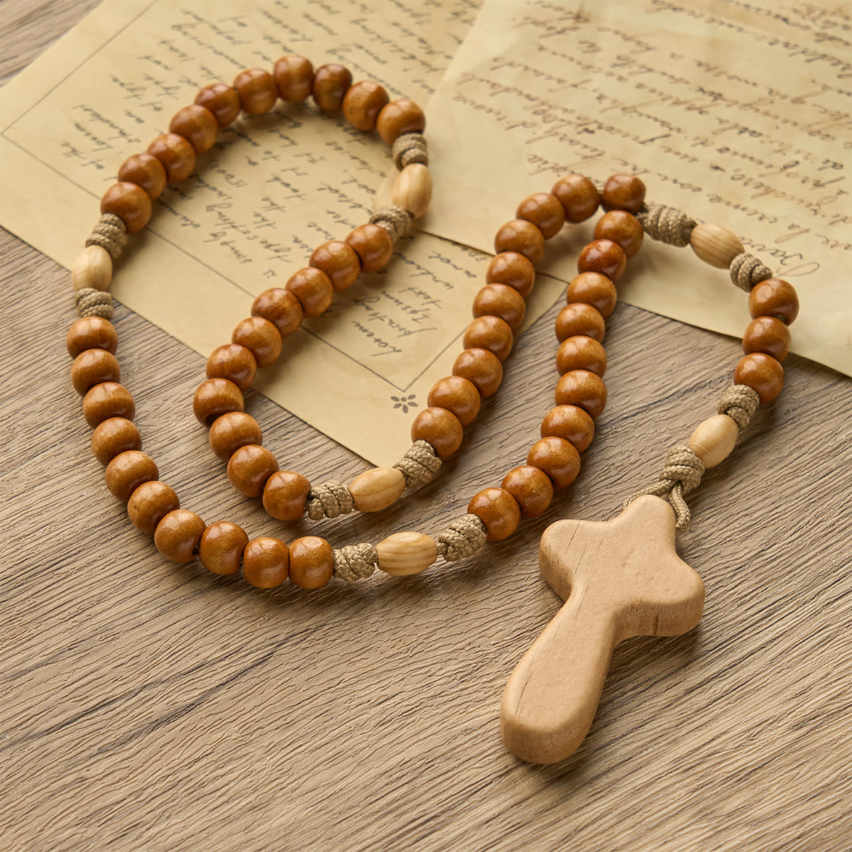 The Minimalist Olive Wood Rosary, featuring a Hand - held Prayer Comfort Cross, blends understated design with deep faith. Its clean lines and natural wood essence embody simple, profound devotion.