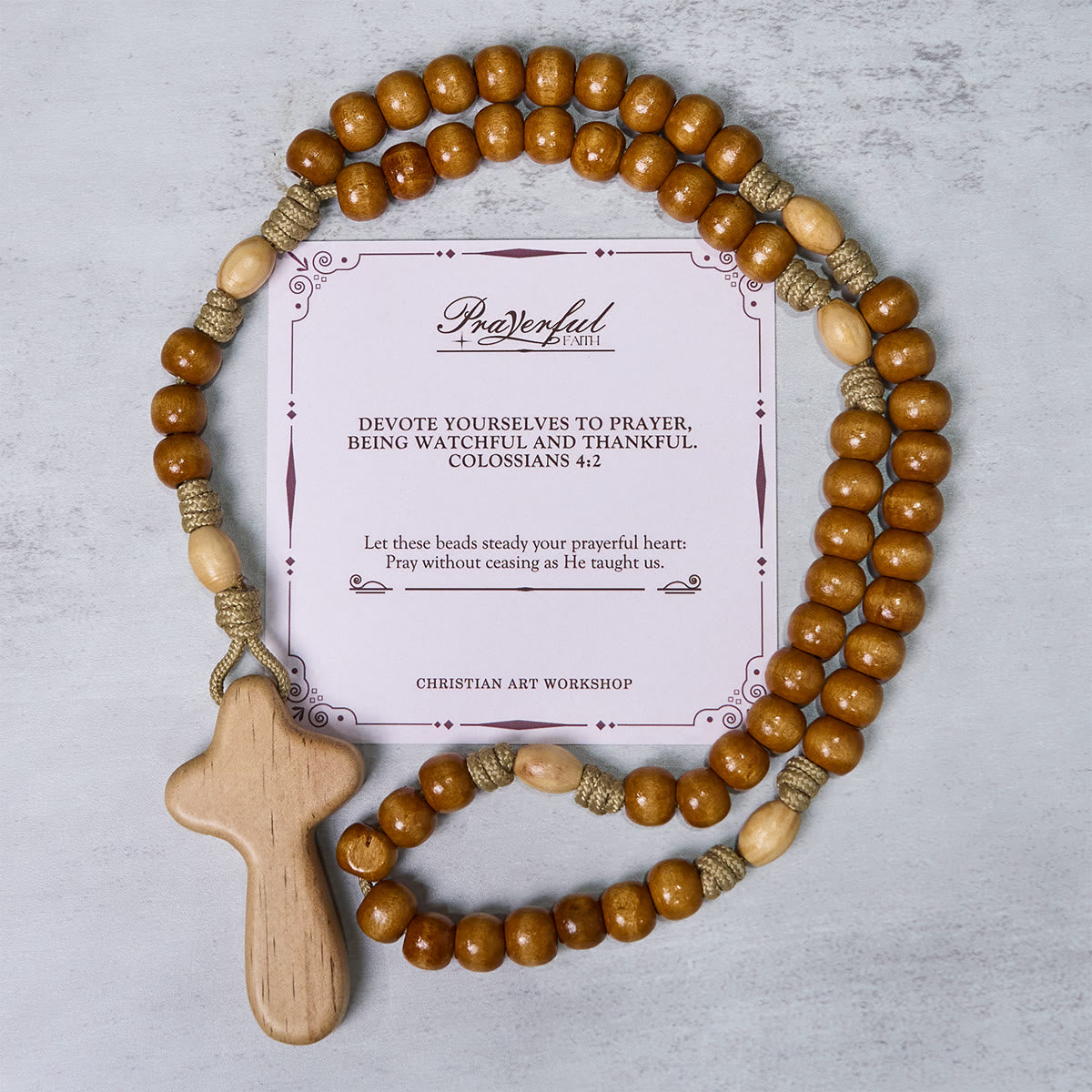 Christianartworkshop PRAYERFUL FAITH: Handmade Minimalist Olive Wood Rosary with Gift Card