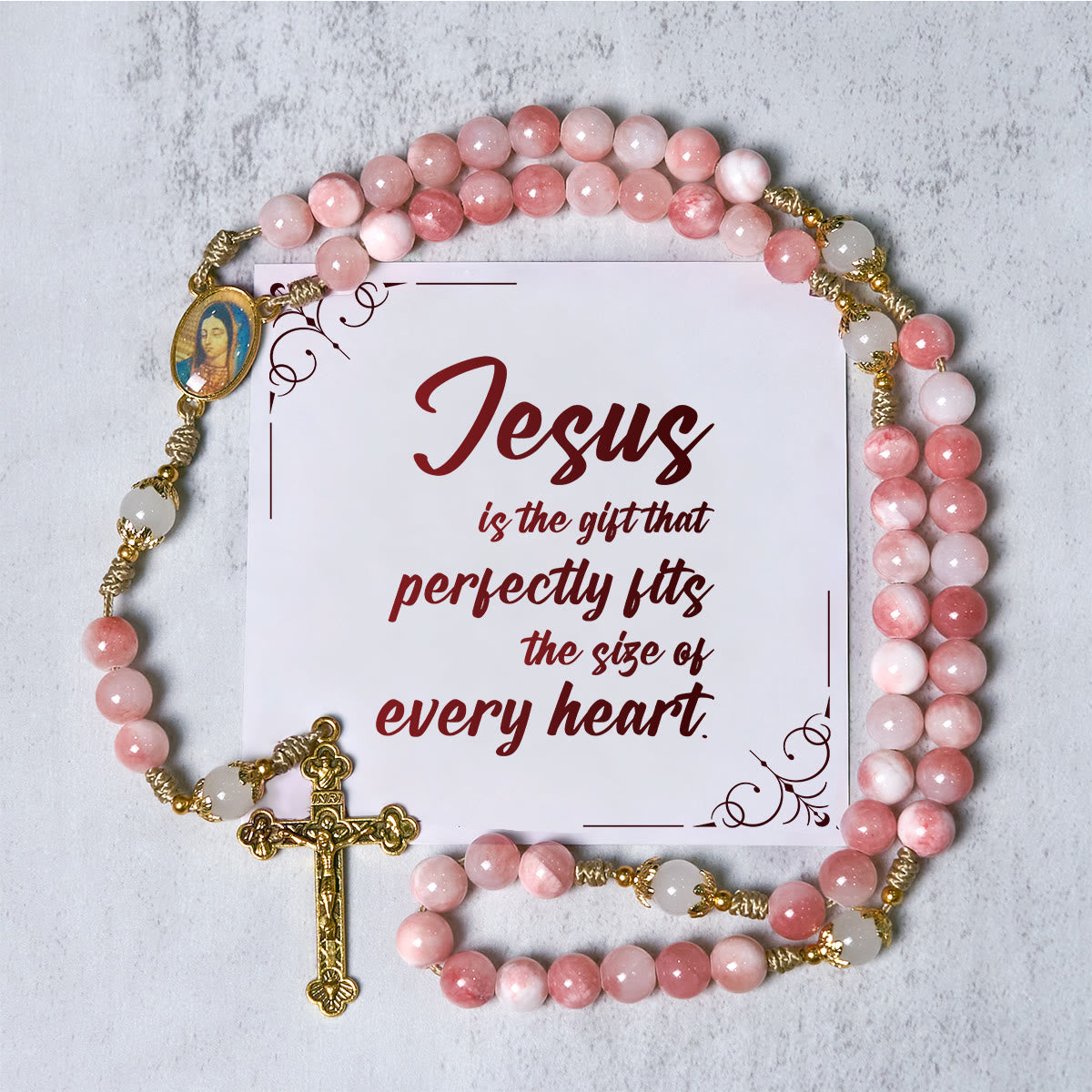 Christianartworkshop PRAYERFUL FAITH: Handmade Pink Glossy Beads Rosary with Gift Card - Jesus is the Gift - image 2