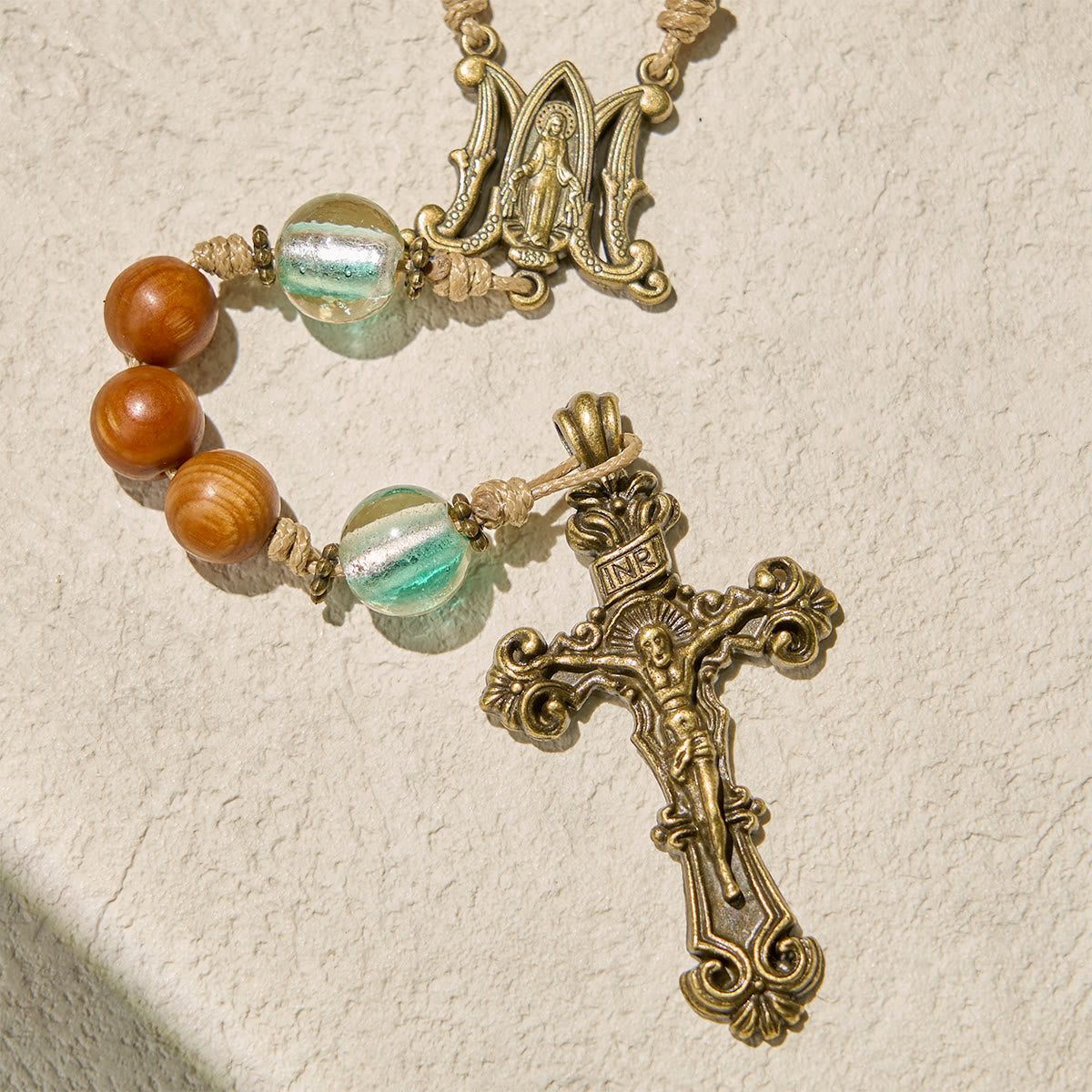 - The Warmth of Materials: Olive wood’s rough grain holds the sun and sand of the Holy Land, a echo of the ground Jesus walked. 925 silver softens with time, like faith deepening in your bones. We skip mass production for handcrafting because every uneven (etching), every slightly imperfect bead, is a craftsman’s prayer made visible—much like how God makes no two souls the same.