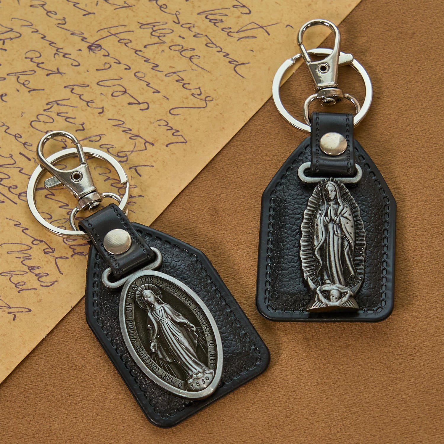 Crafted with care, the keychains combine durable leather with detailed metal emblems. The sleek, understated design makes them suitable for everyday use, allowing you to display your faith in a subtle yet meaningful way.