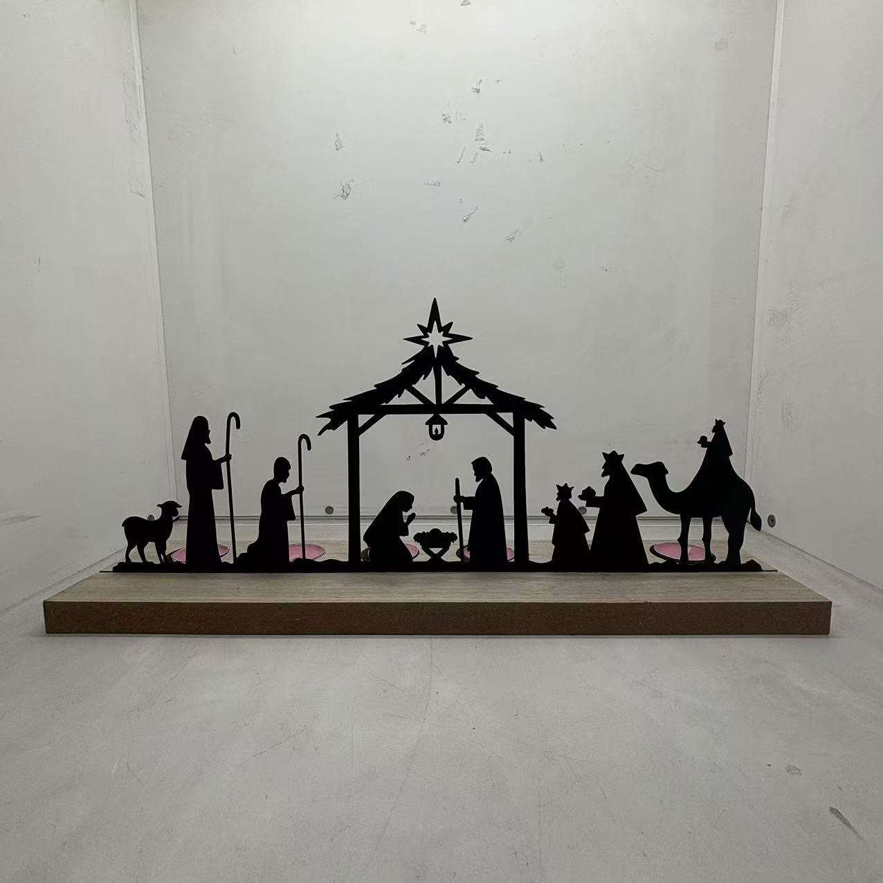 This iron decor merges the sacred nativity scene (with guiding star) — blending spiritual meaning with cozy charm to create a meaningful piece for seasonal or daily spaces. -