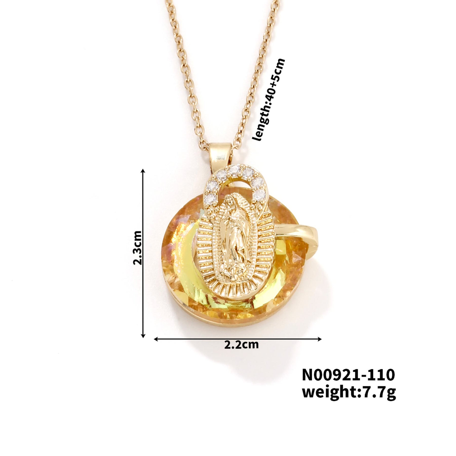 A pendant featuring Our Lady, encased in multi - colored zircon stones, stands as a luminous testament to faith. Its glittering, crystal - like zircon hues and gold - toned detailing reflect a blend of artistic beauty and sacred meaning, crafted to shine as a vivid symbol of devotion. -